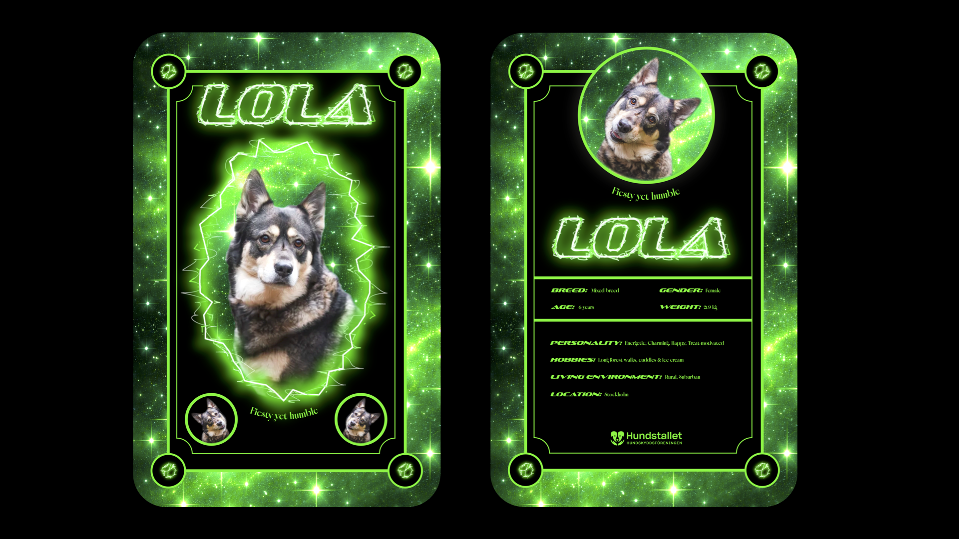 Fan cards for the adoptable dogs at the dog shelter Hundstallet.
